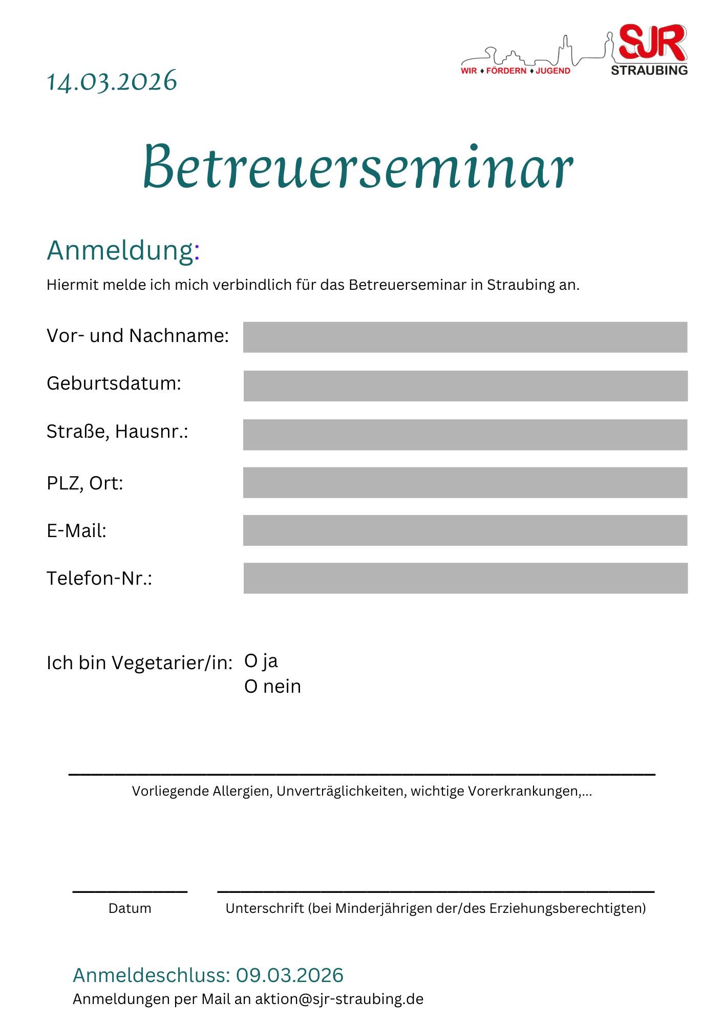 Anmeldeformular Betreuerseminar
